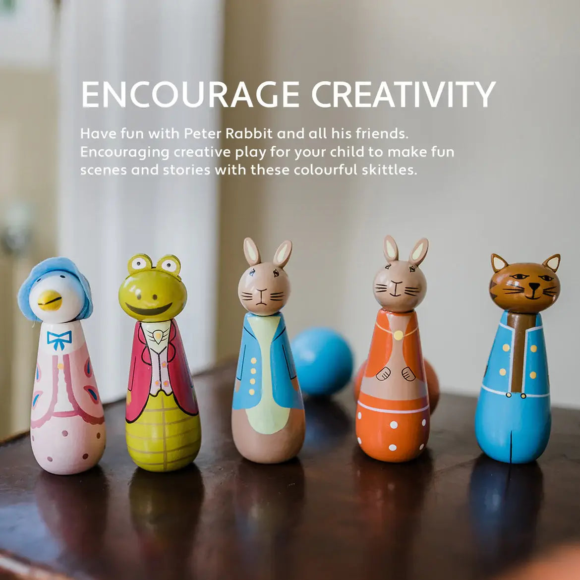These Peter Rabbit skittles are a perfect traditional wooden toy.