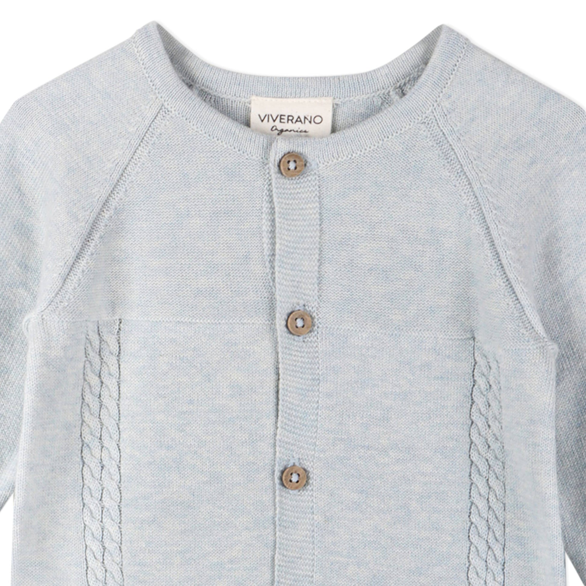 100% organic cotton sweater knit baby coverall romper with cable design & button front, ultra-soft handfeel.
