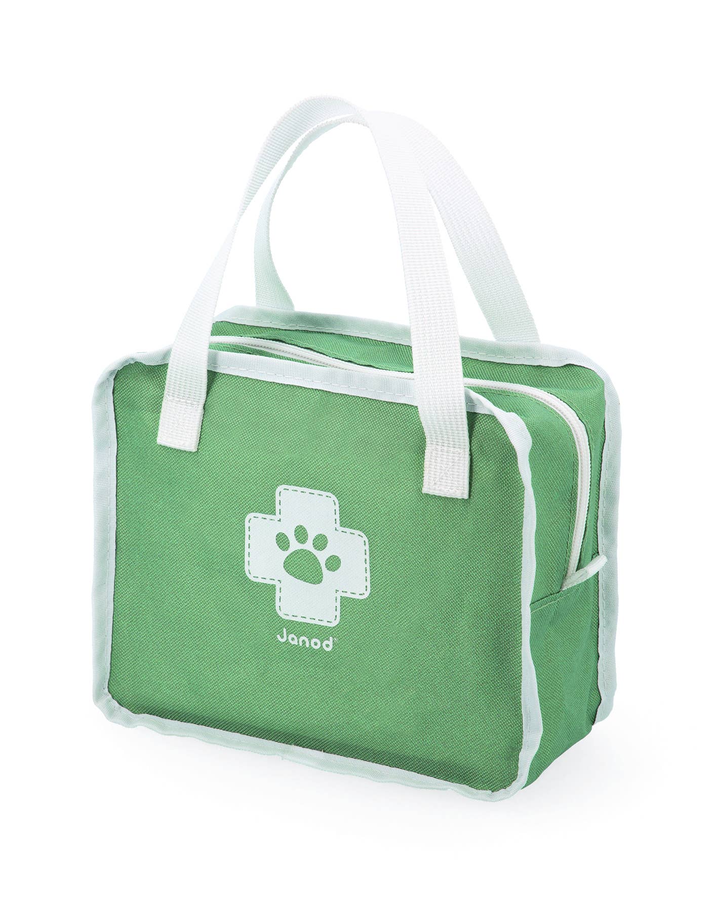 - 4 wooden accessories: stethoscope, syringe, thermometer and a pot of cream