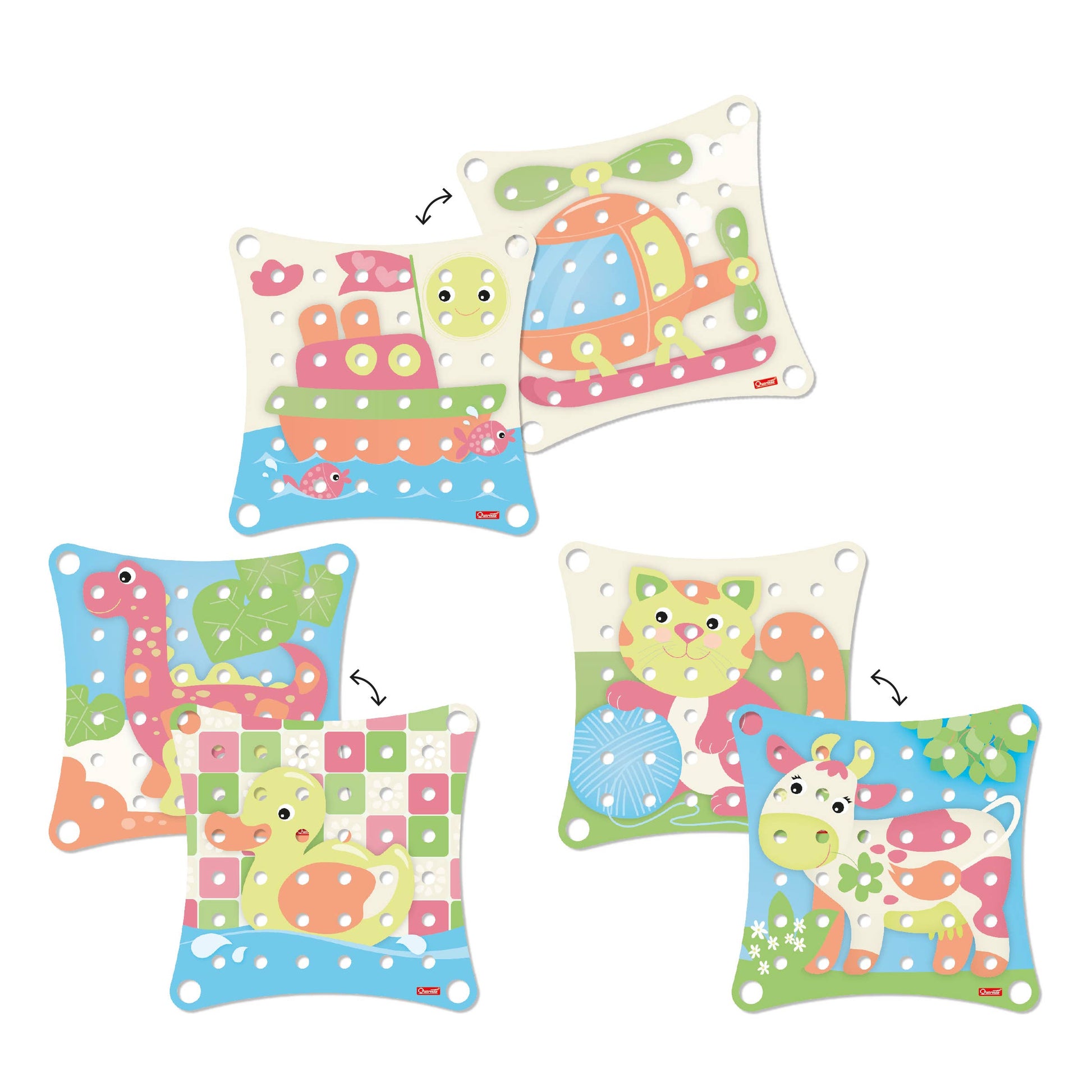 The first peg game for children from 2 years of age. The many pieces are colourful, large and stackable for making colourful mosaics or building tall towers. A great game that stimulates creativity and manual skills.