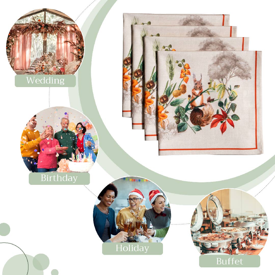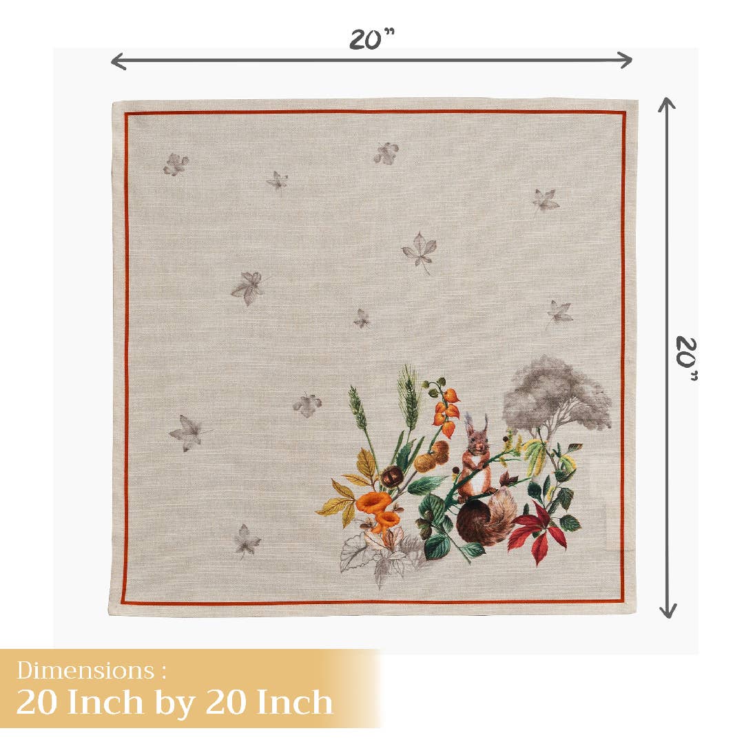 Made from 100% cotton, this set includes four napkins, each measuring 20 by 20 inches — soft, durable, and perfect for bringing warmth and elegance to your Thanksgiving table.
