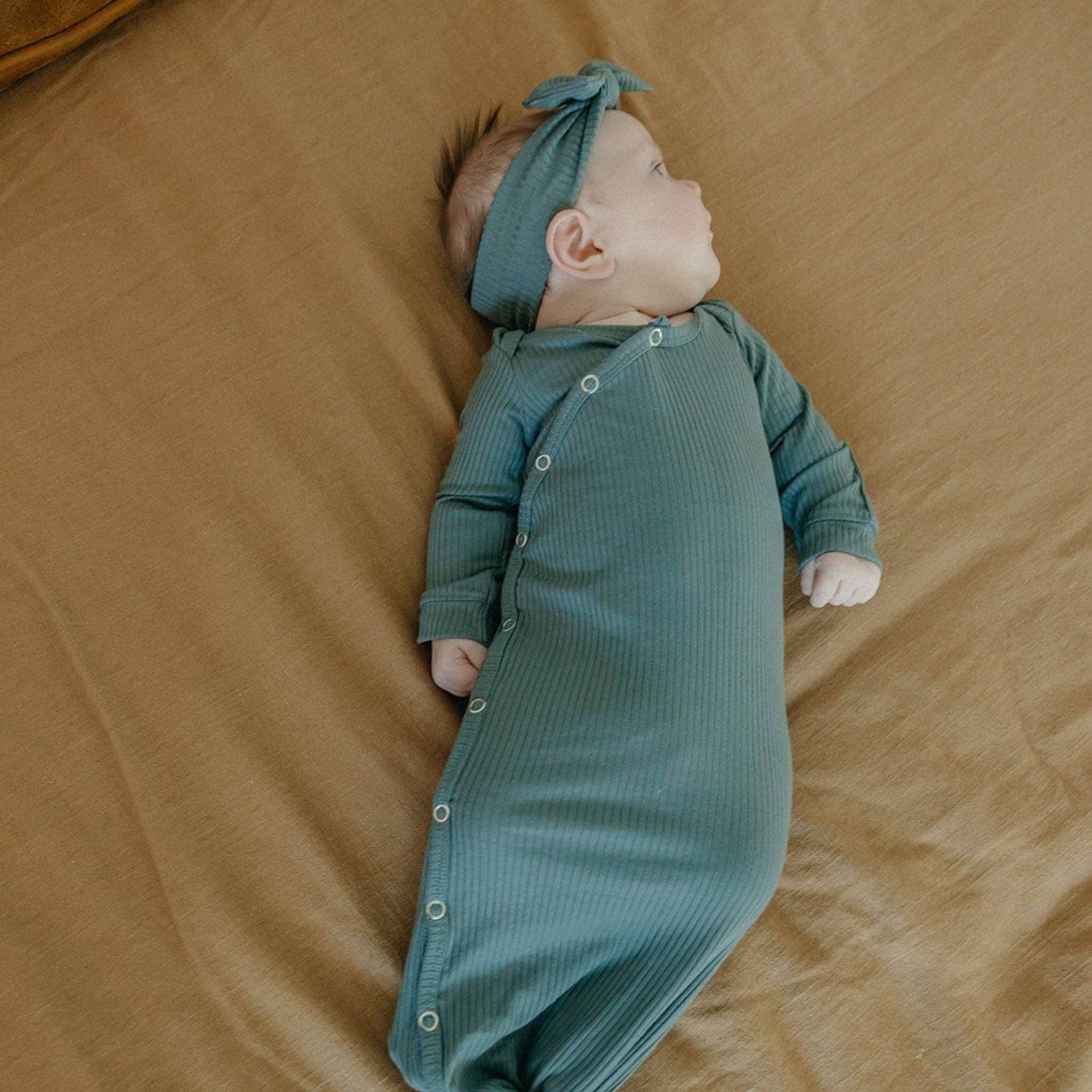 Moss Newborn Knotted Gown | Copper Pearl