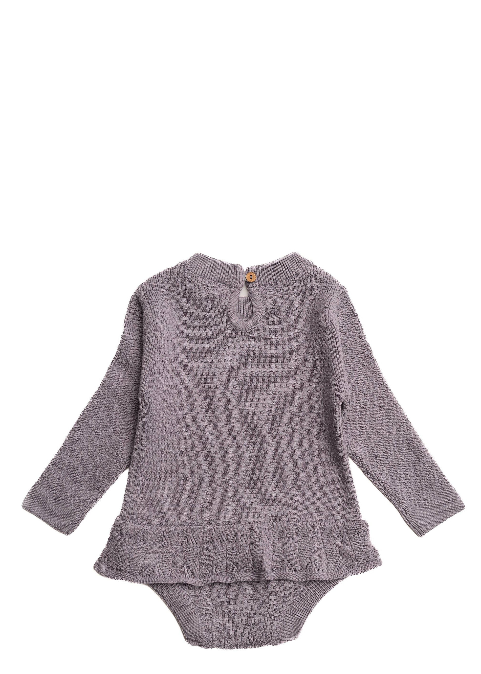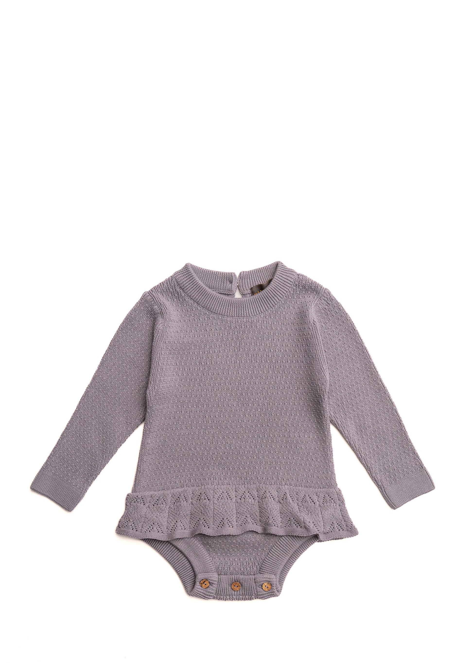 This bodysuit is a light dusty purple with a nice pattern and a small skirt at the bottom.