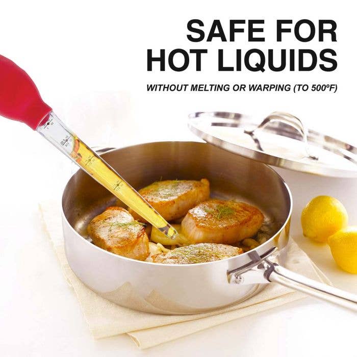The Baster tube is heat-resistant to 500-degrees Fahrenheit with easy-read increments for precise measuring.