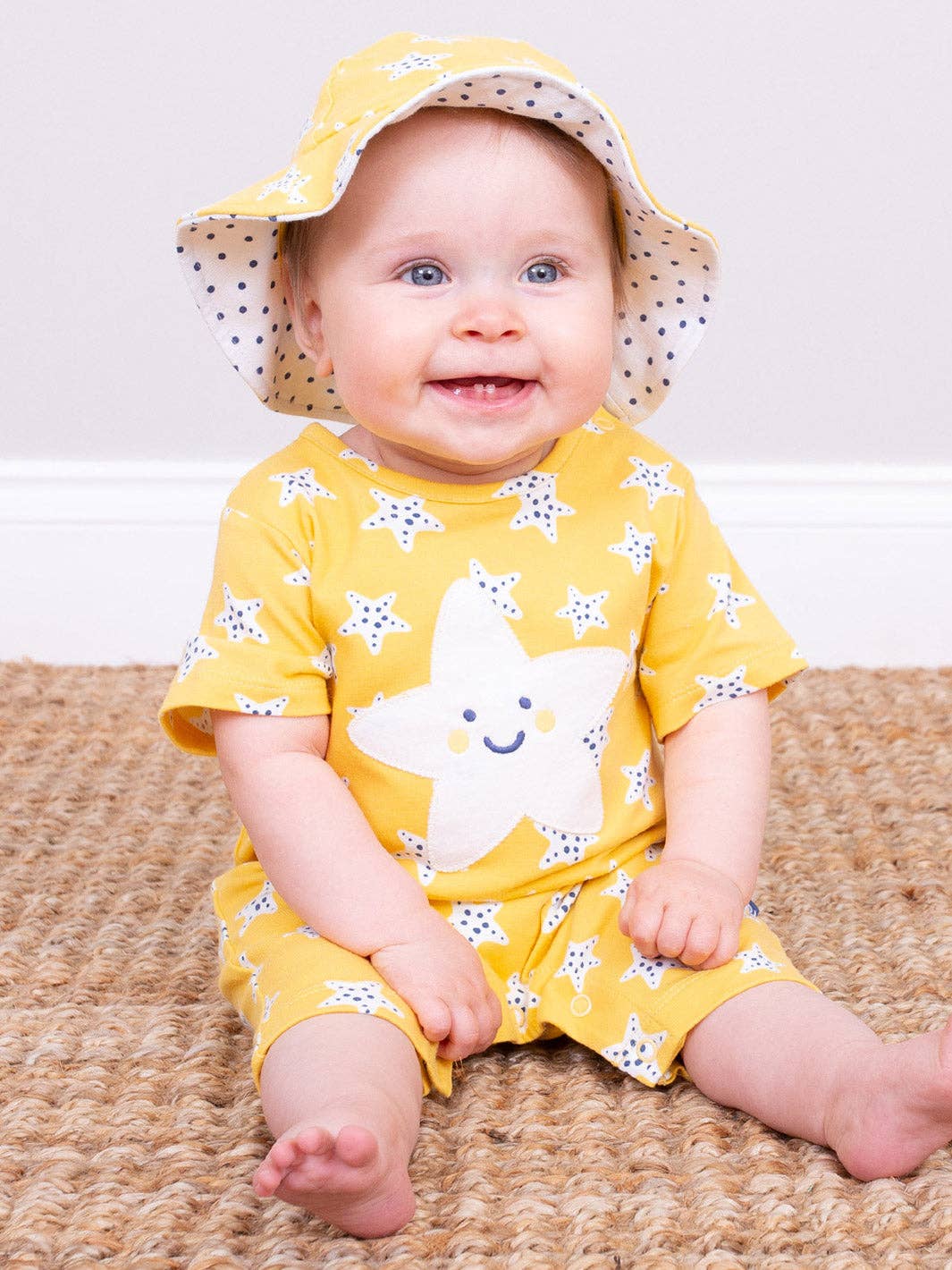 Our super starfish romper will make you smile! The perfect choice for little ones, it's made in our uplifting super starfish print on organic cotton jersey.