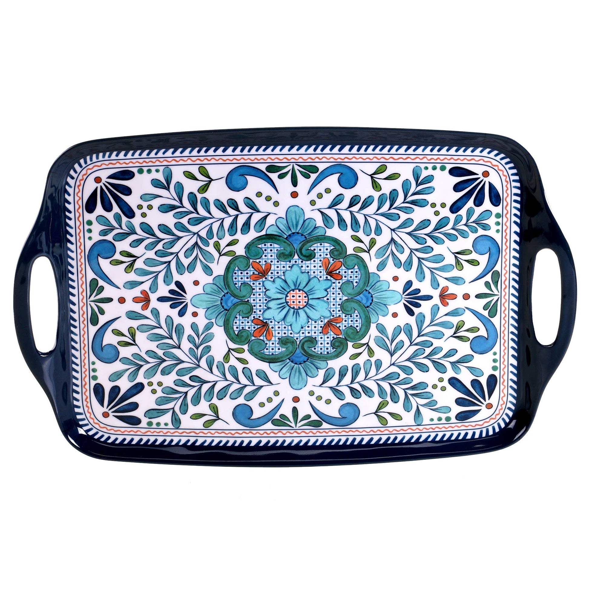 The Talavera Melamine Rectangular Tray with Handles from Certified International is a versatile, year-round essential for your kitchen.