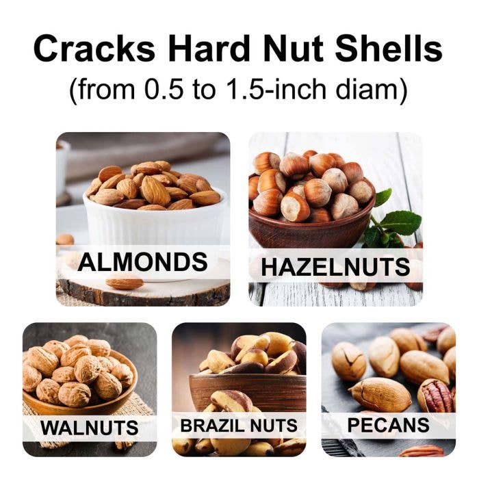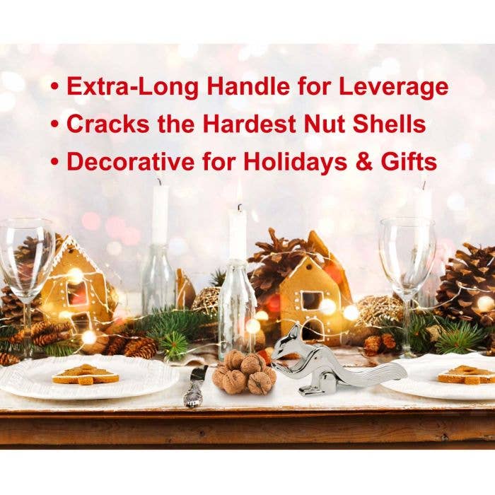 The extra-long tail-shaped lever adds plenty of leverage to easily crack the hardest of shells and free the delicate nut from inside without it becoming damaged. Simply lift the tail-shaped lever, place a nut in the squirrel paws, then press downward on the tail until the shell cracks open.