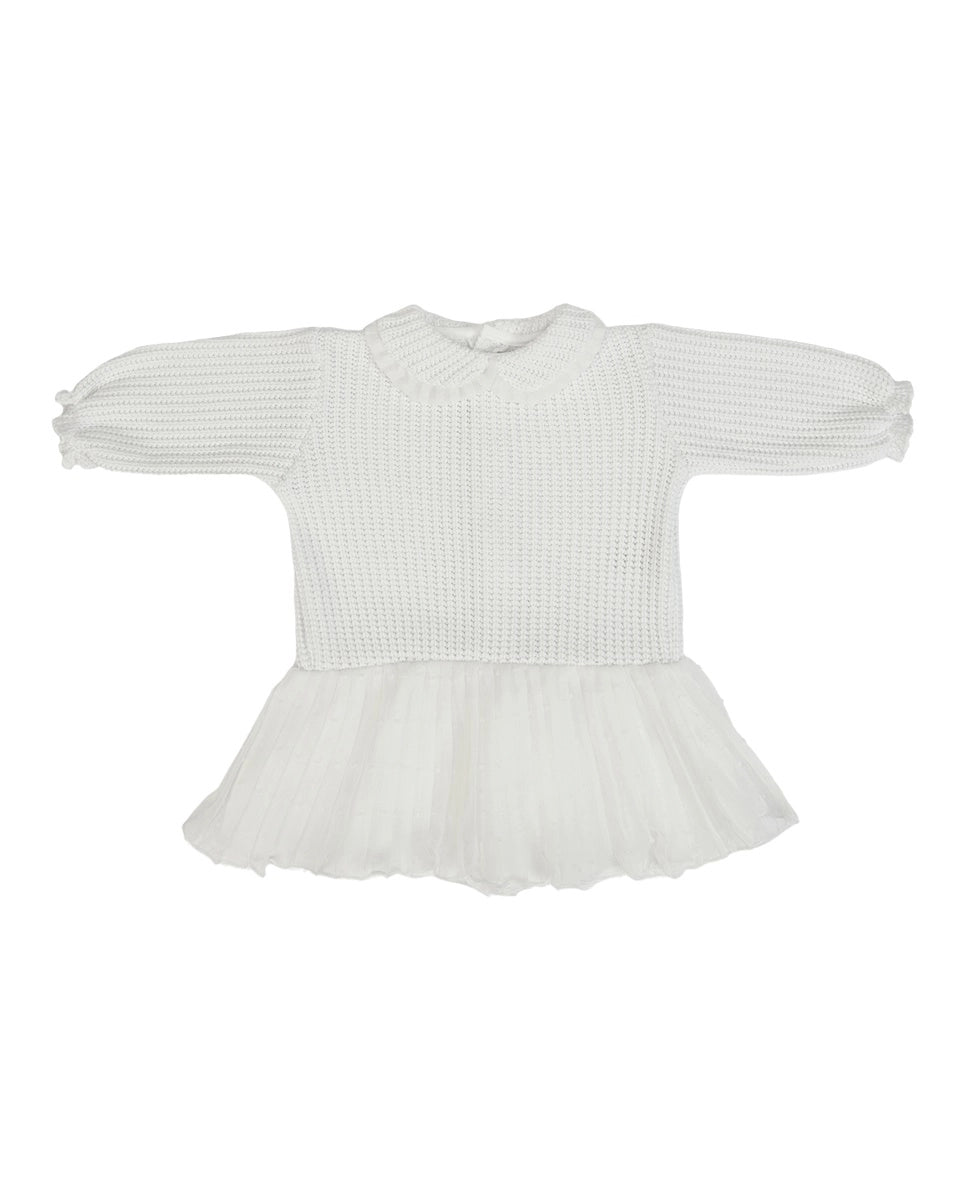 Knitted long sleeve dress, with peter pan collar, back opening, and tulle skirt